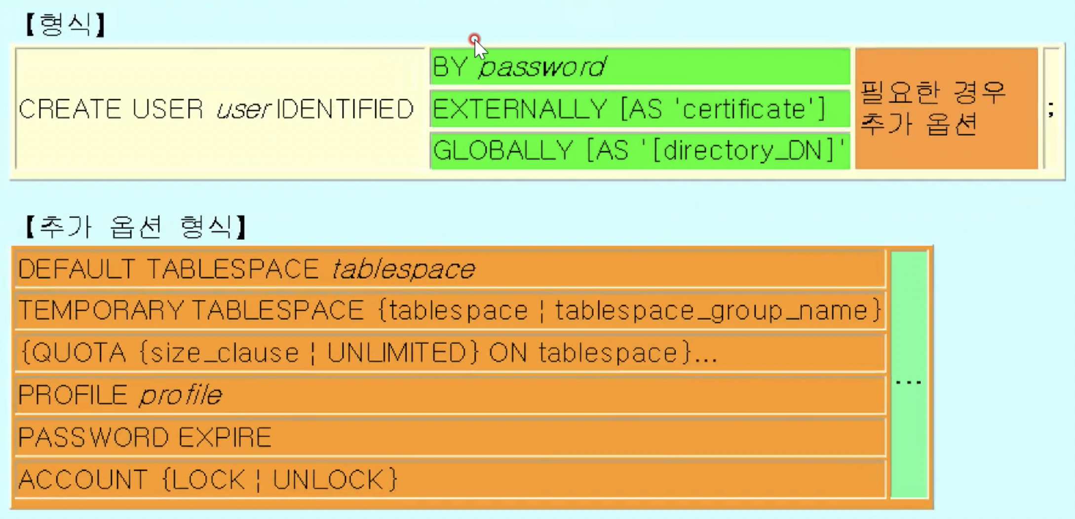 IDENTIFIED BY λΉλ°λ²νΈ + νμν κ²½μ°μΆκ° μ΅μ