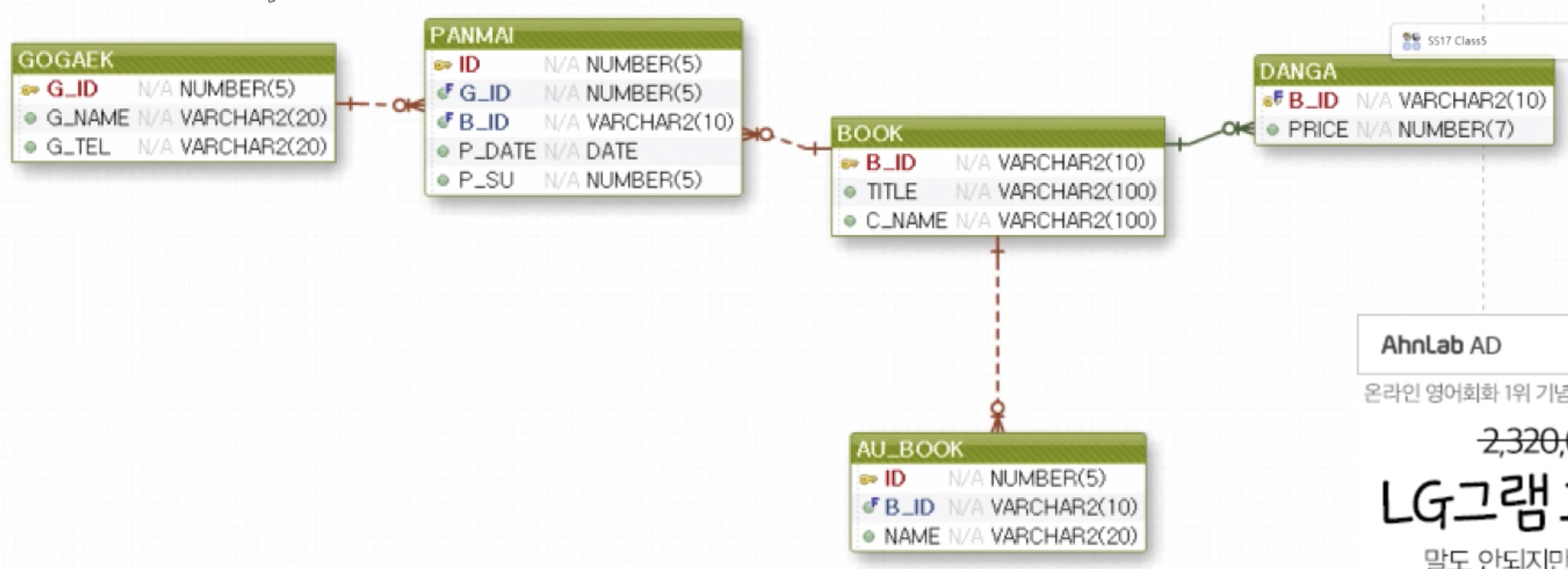 FROM book b, danga d, gogaek g, panmai p