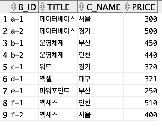 ( b_id, title, price ์ปฌ๋ผ ์ถ๋ ฅ )