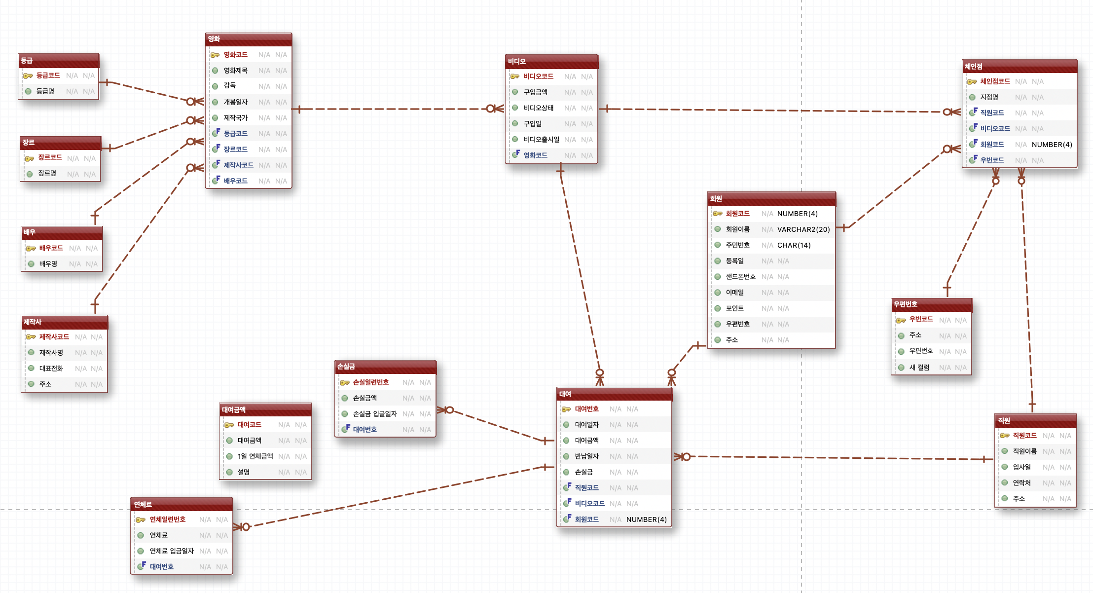 | ๋น๋์ค ๊ฐ๊ฒ(SHOP) DB๋ชจ๋ธ๋ง = [์๊ตฌ๋ถ์์] โก ์ค๋ฌด์์ ๊ฐ์ด ์ ๋ฌด์ ์ธ ์ค๋ช ์ ๋ฃ๊ณ ๋ชจ๋ธ๋ง์ ์์ํด ๋ณด์. 1. ํ์์ ๋ฅผ ์ค์ํ๋ ๋น๋์ค ์์ . 2. ํ์ ๊ด๋ฆฌ ใฑ) ํ์์ด๋ฆ, ์ฃผ๋ฏผ๋ฒํธ, ์ ํ๋ฒํธ, ํด๋ํฐ๋ฒํธ, ์ฐํธ๋ฒํธ, ์ฃผ์, ๋ฑ๋ก์ผ ๋ฑ . 3. ๋น๋์ค ํ ์ดํ ๊ด๋ฆฌ ใฑ) ์ฅ๋ฅด๋ณ, ๋ฑ๊ธ๋ณ๋ก ๋๋์ด ๊ด๋ฆฌ. ใด) ๊ณ ์ ํ ์ผ๋ จ๋ฒํธ๋ฅผ ๋ถ์ฌํด์ ๋น๋์ค ํ ์ดํ๋ฅผ ๊ด๋ฆฌ. ใท) ์ํ์ ๋ชฉ, ์ ์์, ์ ์ ๊ตญ๊ฐ, ์ฃผ์ฐ๋ฐฐ์ฐ, ๊ฐ๋ , ๊ฐ๋ด์ผ์, ๋น๋์ค ์ถ์์ผ ๋ฑ ์์ธ ์ ๋ณด ๊ด๋ฆฌ. ใน) ํ์ ์ฌ๋ถ์ ๋์ฌ ์ฌ๋ถ ๊ด๋ฆฌ. 4. ๋น๋์ค ํ ์ดํ ๋์ฌ ใฑ) ํ์์ผ์ด ๊ธฐ๋ณธ ์ดํ ใด) ๋ฏธ๋ฉ ํ์๋ค์ ๋ชฉ๋ก์ ์๋์ผ๋ก ๊ด๋ฆฌ. ใท) ์ฐ์ฒด๋์์ ๊ฒฝ์ฐ์๋ ์ฐ์ฒด๋ฃ๋ฅผ ๋ฐ๋๋ค. ใน) ๋์ฌ๋ฃ ์ /๊ตฌ ์ฐจ๋ฑ ๊ด๋ฆฌ. 5. ํฌ์ธํฐ ๊ด๋ฆฌ ์๋น์ค ใฑ) ํ์์๊ฒ ๋์ฌ 1ํ๋น 1์ ์ฉ ํฌ์ธํธ ์ ์๋ฅผ ๋ถ์ฌํ์ฌ 10์ ์ด ๋๋ฉด ๋ฌด๋ฃ๋ก TAPE ํ๋ ๋์ฌ ์๋น์ค 6. ๊ด๋ฆฌ์ ๊ด๋ฆฌ ใฑ) ์ผ๋ณ , ์๋ณ, ๋ ๋ณ ๋งค์ถ์ก ์์ฝ๊ฒ ํ์ . ใด) ๋น๋์ค ํ ์ดํ์ ๋์ฌ ํ์ ํ์ . ใท) ์ฐ์ฒด๋ฃ ๊ด๋ฆฌ ใน) ๋ฏธ๋ฉ ํ์ ๊ด๋ฆฌ. ใ ) ์ง์ ๊ด๋ฆฌ( ๊ทผ๋ฌด ์๊ฐ, ์๊ธ ์๋ ๊ณ์ฐ ) / ์๊ธ + ๊ทผํ๊ด๋ฆฌ ใ ) ์ฒด์ธ์ ์ ํ์ฅํด ์ด์ํ๊ณ ์ ํจ. |