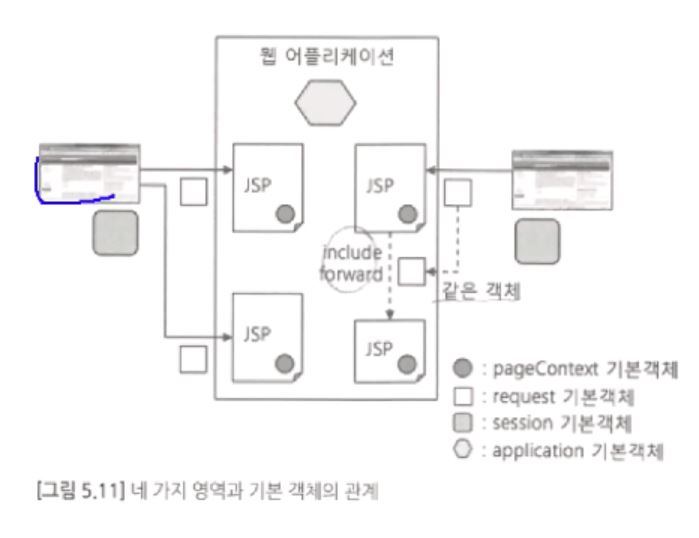 p 132 JSP ๊ธฐ๋ณธ ๊ฐ์ฒด์ 4๊ฐ์ง์ ์์ญ( scope )