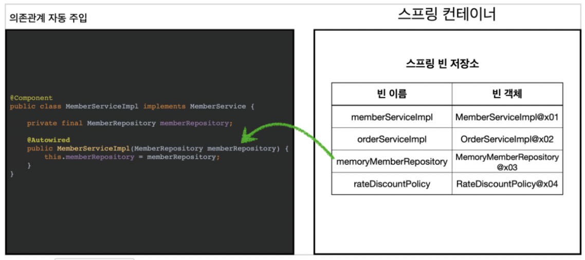 - ์์กด๊ด๊ณ๋ ์๋์ผ๋ก ์ฃผ์ ํ๋ @Autowired ๊ธฐ๋ฅ ์ ๊ณต
