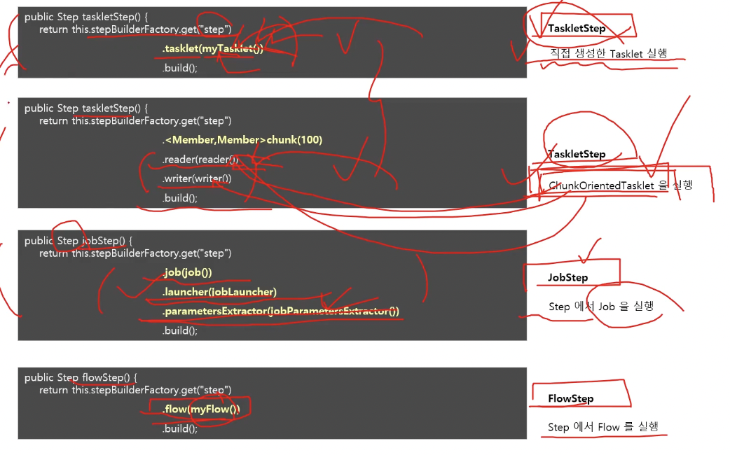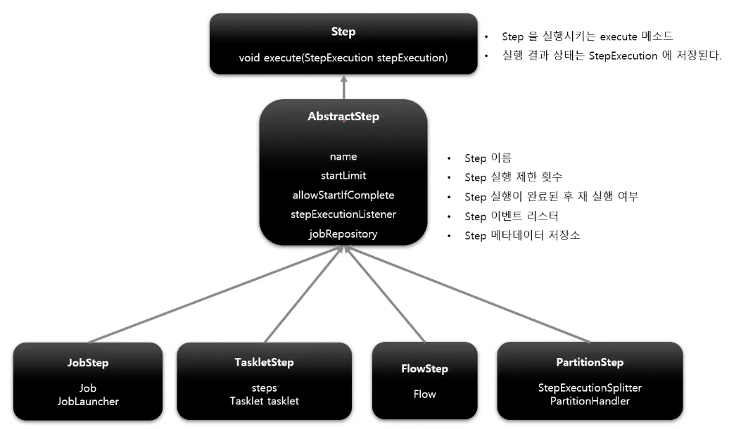 -> Step์ ๋ด๋ถ์ ์ผ๋ก tasklet ์ธํฐํ์ด์ค ๊ฐ์ฒด ํฌํจ -> Step์ด Tasklet execute